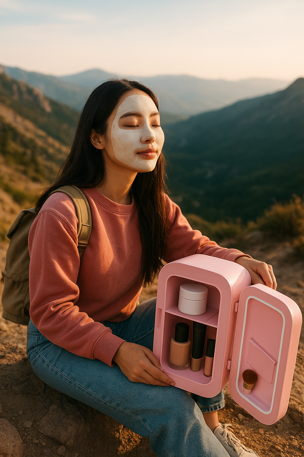 😍 This little pink beauty fridge is basically my skincare's personal bodyguard. My face masks are chilled, my serums are happy, and honestly?